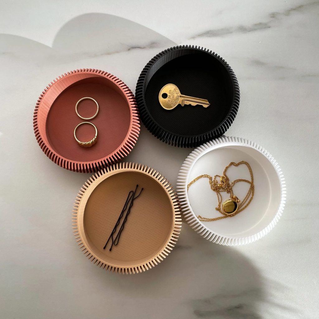 Quite possibly the dream drop zone dishes, these trays from Sonnihaus come in a variety of sizes and colors. We love the small circle trays for lip balm, earbuds, and jewelry, while the medium trays are the perfect size for glasses, a small TV remote, or your phone.