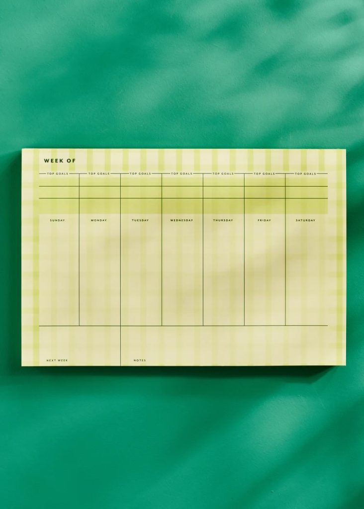 With both a general to-do list and top goals for each day, this bright, playful notepad is perfect for anyone who loves looking at their week at a glance.