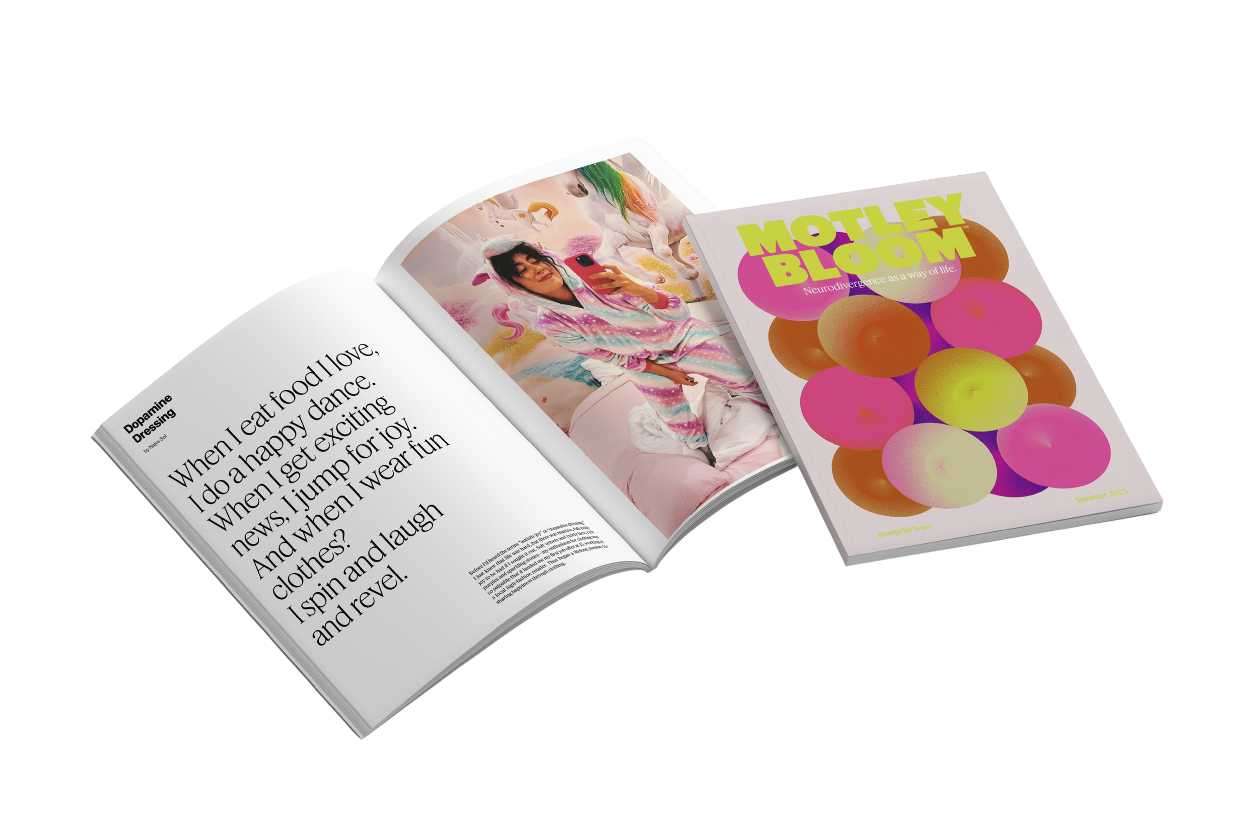 We are an ambitious and playful team of empathetic, self-aware, determined creatives, and our vision is a world that truly values neurodivergent traits. We created Motley Bloom to make space for dialogue and diverse voices, and to build a vibrant and aspirational community.